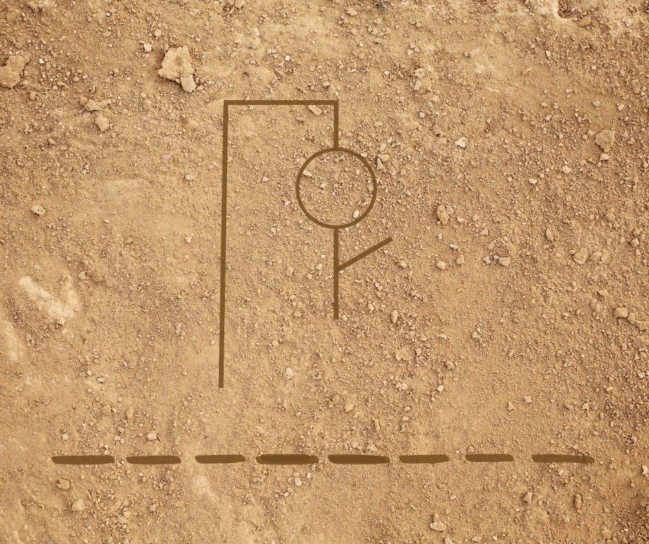“Let’s play Hangman,” he shouted. Grabbing the stick he drew eight blanks and a huge upside down L. “Barbara, you can go first since you’re new.”